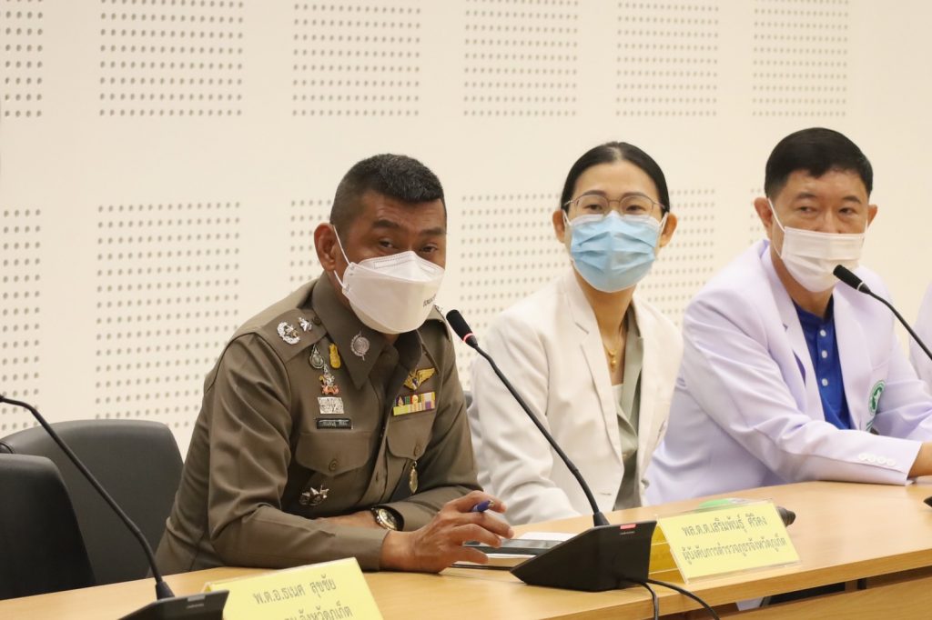 เมื่อวันที่ 22 ก.ค.65 เวลา 11.00 น. ที่ศาลากลางจังหวัดภูเก็ต นายพิเชษฐ์ ปาณะพงศ์ รองผู้ว่าราชการจังหวัดภูเก็ต พร้อมด้วยนายแพทย์กู้ศักดิ์ กู้เกียรติกูล นายแพทย์สาธารณสุขจังหวัดภูเก็ต นายแพทย์วีระศักดิ์ หล่อทองคำ ผู้อำนวยการโรงพยาบาลวชิระภูเก็ต พล.ต.ต.เสริมพันธุ์ ศิริคง ผู้บังคับการตำรวจภูธรจังหวัดภูเก็ต ร่วมแถลงข่าว กรณีพบผู้ป่วยโรคฝีดาษวานร หรือฝีดาษลิง ที่จังหวัดภูเก็ต เป็นนักท่องเที่ยวชาวไนจีเรีย อายุ 27 ปี ซึ่งเป็นรายแรกที่พบในประเทศไทย โดยผู้ป่วยรายดังกล่าวได้หลบหนีออกจากที่พักเมื่อวันที่ 18 ก.ค.ที่ผ่านมา และยังอยู่ระหว่างการติดตามตัวของเจ้าหน้าที่
