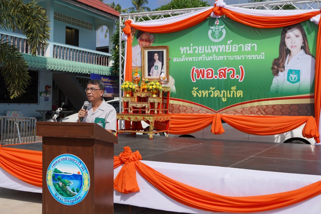 เมื่อวันที่ 13 มิถุนายน 2566 เวลา 09.00 น. นายอรุณ โสฬส นายกเทศมนตรีตำบลราไวย์ ร่วมกับอสม.ตำบลราไวย์ โรงพยาบาลส่งเสริมสุขภาพตำบลราไวย์ พร้อมหน่วยแพทย์เคลื่อนที่ พอ.สว. จังหวัดภูเก็ต ให้บริการรักษาพยาบาล บริการตรวจตา ทันตกรรม ฉีดวัคซีน COVID-19 นวดแผนไทย คัดกรองมะเร็งเต้านม ตัดผม ตรวจวัดสายตา โดยนายดนัย สุนันทารอด รองผู้ว่าราชการจังหวัดภูเก็ต เป็นประธานในพิธีฯ เพื่อให้เกิดคุณภาพชีวิตที่ดี แก่ประชาชนตำบลราไวย์ จังหวัดภูเก็ต ณ มัสยิดบ้านบางคณฑี (บน) หมู่ 4 ตำบลราไวย์ จังหวัดภูเก็ต