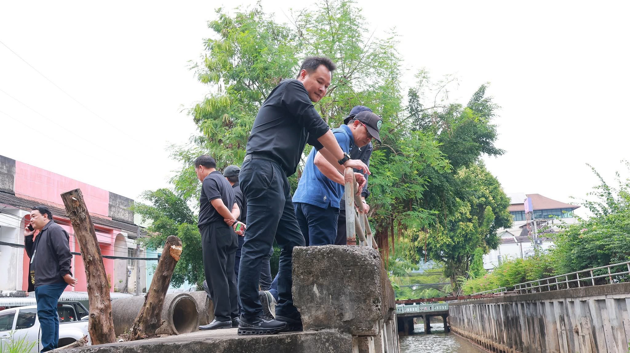 เมื่อวันที่ 24 พ.ย. 68 เวลา 10.00 น. นายศุภโชค ละอองเพชร นายกเทศมนตรีนครภูเก็ต ลงพื้นที่ตรวจสอบเขื่อนกั้นดินคลองบางใหญ่ ช่วงไหลผ่านด้านหลังโรงแรมรอยัลภูเก็ตซิตี้ ถนนพังงา หลังพบว่าเขื่อนบางส่วนชำรุดและขาดการเชื่อมต่อ ส่งผลให้ในช่วงฝนตกหนักและน้ำทะเลหนุนสูง มีน้ำเอ่อล้นเข้าพื้นที่บ้านเรือนประชาชนและผิวจราจรเป็นประจำ