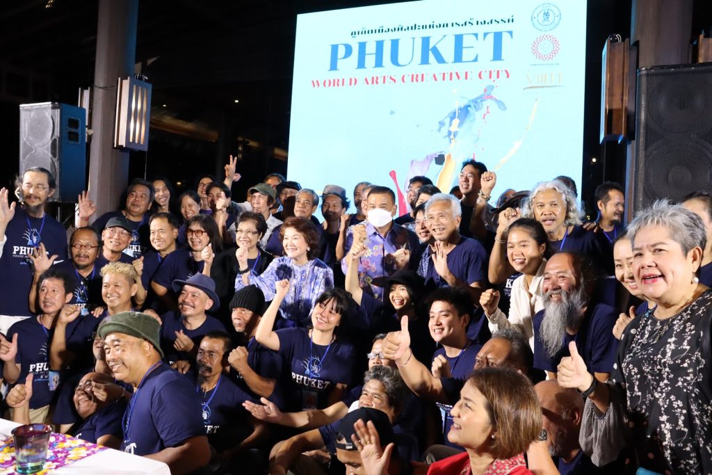 นายเรวัต อารีรอบ นายกองค์การบริหารส่วนจังหวัดภูเก็ต ร่วมกับ คุณนวลละออ ปิ่นทอง นายกสมาคมศิลปินทัศนศิลป์นานาชาติแห่งประเทศไทย คุณสมศักดิ์ รักษ์สุวรรณ ศิลปินอาวุโสและที่ปรึกษานายกสมาคมศิลปินทัศนศิลป์ฯ และคุณอัญชลี วานิช เทพบุตร อดีตเลขาธิการนายกรัฐมนตรี ที่ปรึกษาโครงการฯ ร่วมแถลงข่าวการจัดทำโครงการภูเก็ตเมืองศิลปะแห่งการสร้างสรรค์ (World Art Creative City) เพื่อส่งเสริมให้จังหวัดภูเก็ตเป็นเมืองศิลปะแห่งการสร้างสรรค์ในระดับนานาชาติ โดยนำศิลปวัฒนธรรมและการสร้างสรรค์ศิลปะร่วมสมัยเพื่อยกระดับการท่องเที่ยวให้เป็นเมืองแห่งการสร้างสรรค์ระดับโลก โดยมี นางจริยา เจริญจิระตระกูล สมาชิกสภา อบจ.ภูเก็ต นางอ้อมเดือน ผิวทอง หัวหน้าฝ่ายการท่องเที่ยว รักษาราชการแทนผู้อำนวยการกองการท่องเที่ยวและกีฬา อบจ.ภูเก็ต และผู้มีเกียรติ เข้าร่วม ณ เดอะวิจิตรรีสอร์ทภูเก็ต