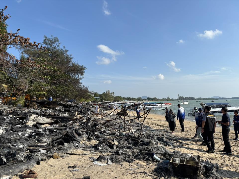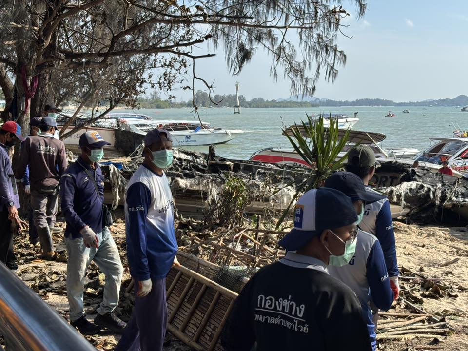เทศบาลตำบลราไวย์ร่วมบูรณาการเร่งเก็บซากเรือสปีดโบ๊ทไฟไหม้ อ่าวฉลอง คาดเคลียร์พื้นที่เสร็จภายในวันเดียว