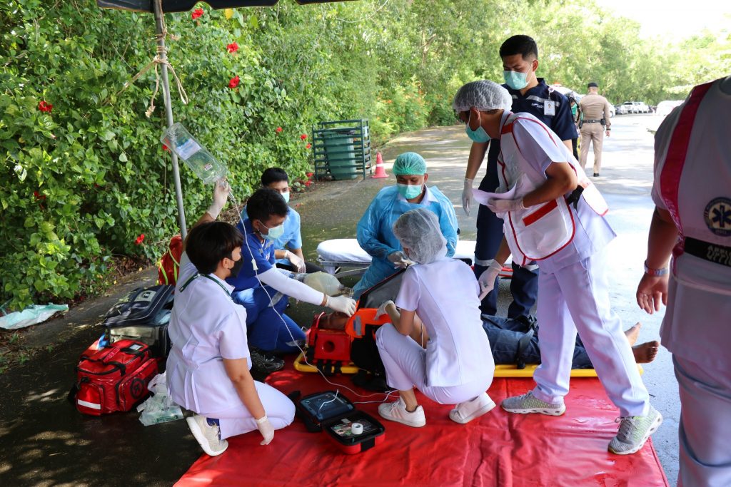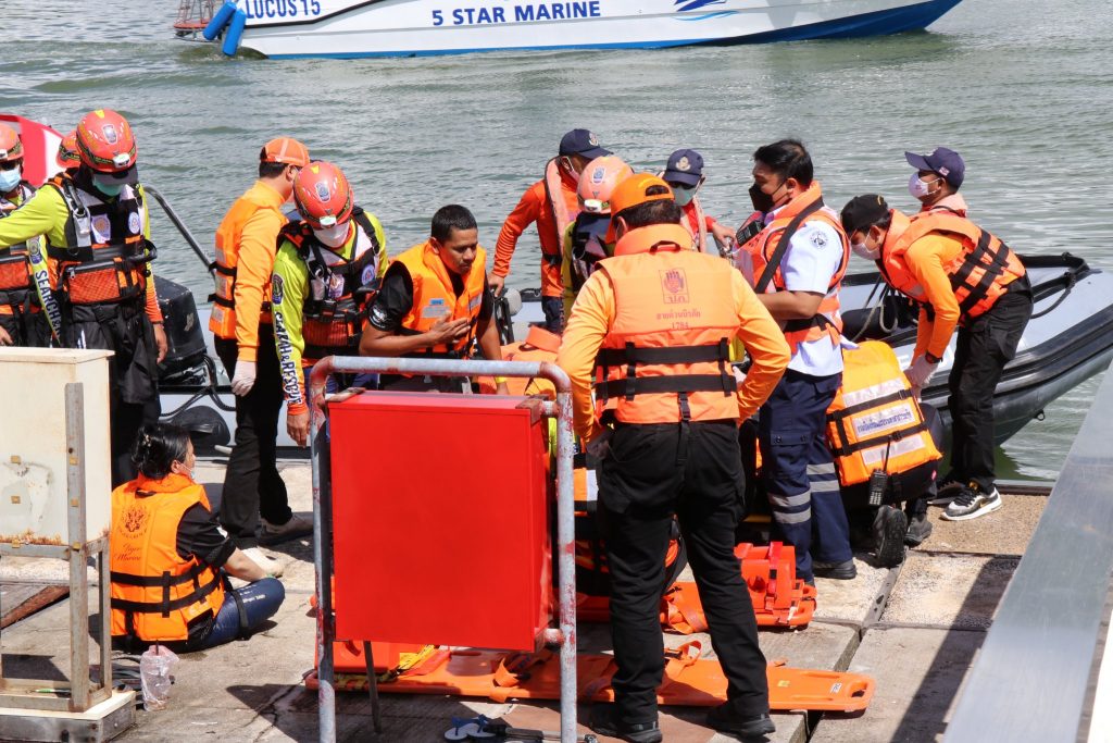วันที่ 29 มิถุนายน 2565 ที่ บริเวณท่าเทียบเรือโบ๊ทลากูน หมู่ที่ 2 ตำบลเกาะแก้ว อำเภอเมืองภูเก็ต พล.ต.ต.ศักย์ศิรา เผือกอ่ำ รองผู้บัญชาการตำรวจภูธร ภาค 8 เป็นประธานในการซักซ้อมแผนเผชิญเหตุช่วยเหลือผู้ประสบภัยทางน้ำ โดย สภ.เมืองภูเก็ต บูรณาการร่วมกับหน่วยงานที่เกี่ยวข้องทั้ง ตำรวจน้ำ เจ้าหน้าที่ปกครองอำเภอเมืองภูเก็ต สำนักงานป้องกันและบรรเทาสารณภัยจังหวัดภูเก็ต สำนักงานป้องกันและบรรเทาสารณภัย เขต 18 เจ้าท่าภูมิภาค สาขาภูเก็ต มูลนิธิกุศลธรรม นำโดย พ.ต.อ.สราวุธ ชูประสิทธิ ผู้กำกับการ สภ.เมืองภูเก็ต ผู้บัญชาการเหตุการณ์ ร่วมฝึกซ้อมแผนเผชิญเหตุช่วยเหลือผู้ประสบภัยทางน้ำ ด้วยการจำลองเหตุการณ์เรือท่องเที่ยวล่มบริเวณปากอ่าว มีนักท่องเที่ยวประสบเหตุ ถือเป็นภาวะฉุกเฉินกรณีเกิดอุบัติภัยทางน้ำ