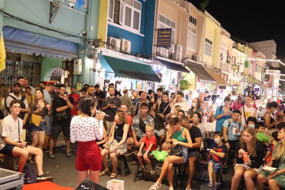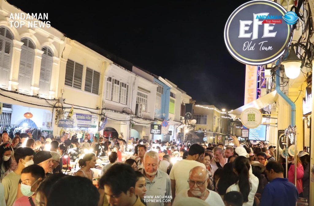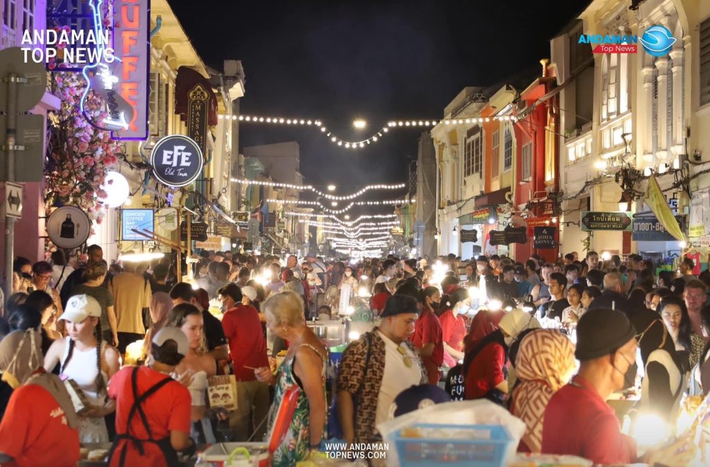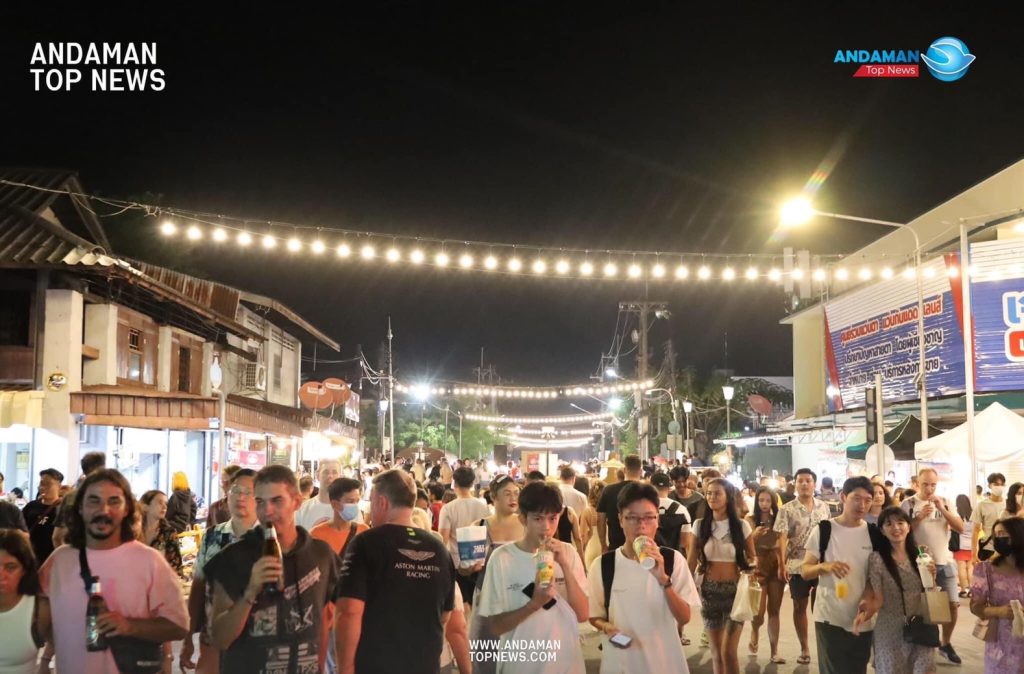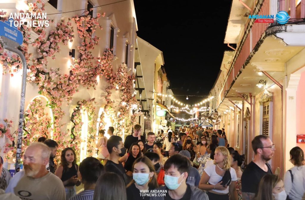 ขณะที่บรรยากาศการท่องเที่ยวพื้นที่ตัวเมืองภูเก็ต ก็คึกคักไม่แพ้กัน โดยเมื่อวานนี้(27 พ.ย.)จากการลงสำรวจสถานที่ท่องเที่ยวในเขตเมือง พบว่าบริเวณสถานที่จัดงาน “ถนนคนเดิน ภูเก็ต หลาดใหญ่” ซึ่งจัดขึ้นทุกวันอาทิตย์ คลาคล่ำไปด้วยนักท่องเที่ยวชาวต่างชาติ ที่มีจำนวนเยอะกว่านักท่องเที่ยวคนไทยไปแล้ว ณ เวลานี้ ถือเป็นสัญญาณที่ดีว่าการท่องเที่ยวของจังหวัดภูเก็ตฟื้นตัวกลับมาแล้วจริงๆ
